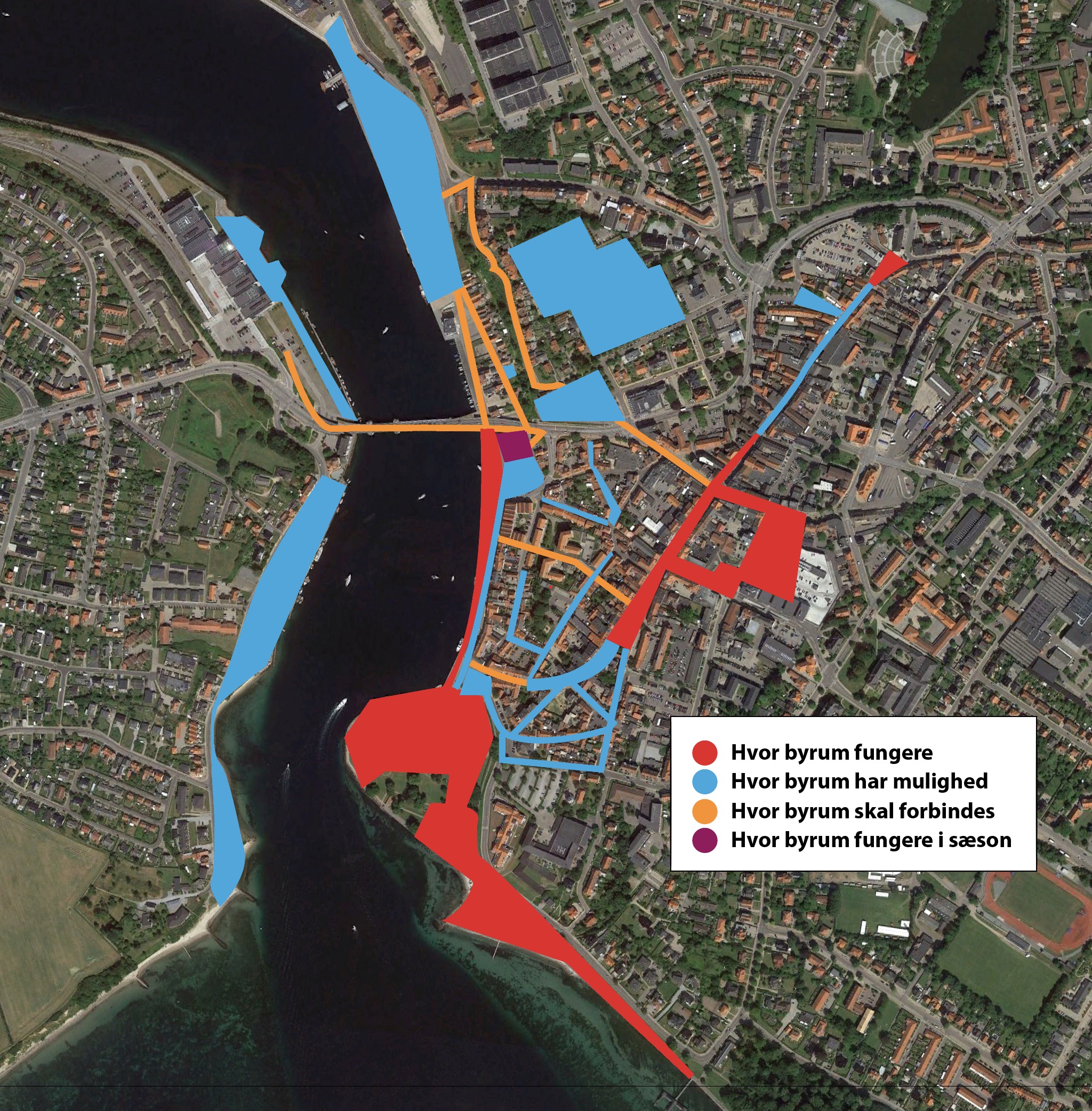Små både har svær adgang til havnefronten. (Broen er for høj, samt dårlig fortøjningsmuligheder)