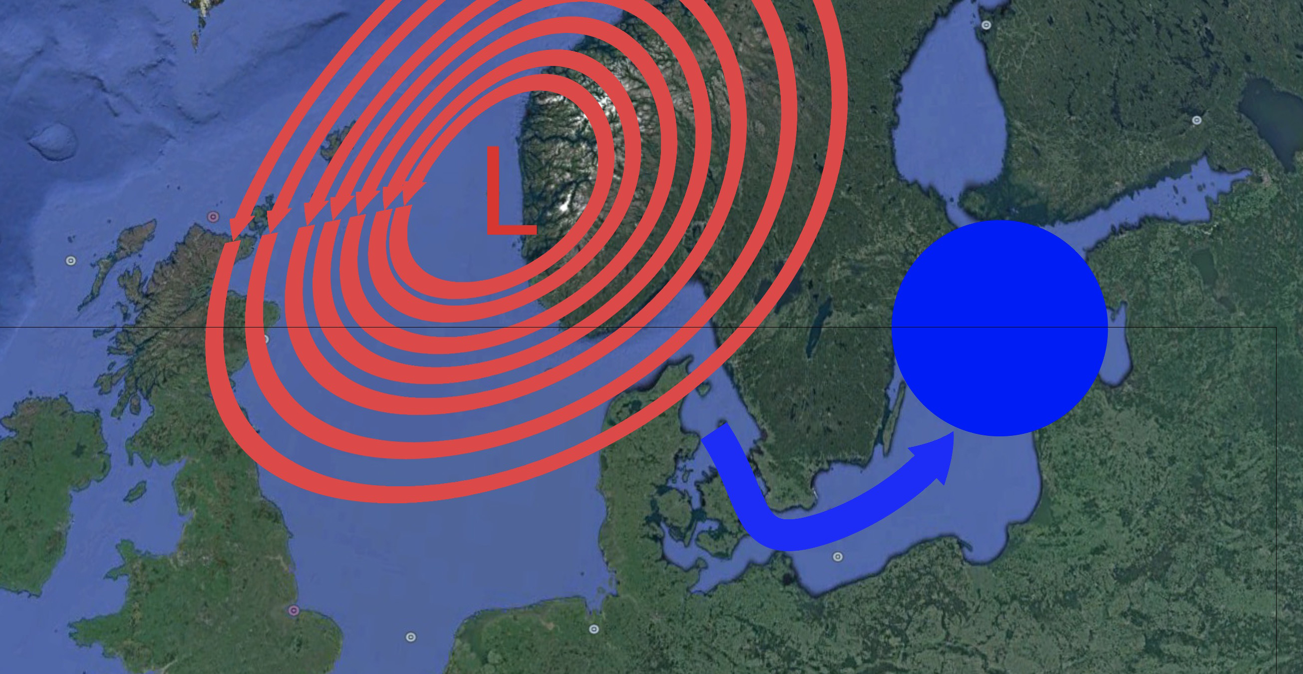Kraftigst hvis det kommer fra en sydlig retning (opstået over nordtyskland)